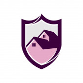 Ochrona domu symbol. Znak bezpieczeństwa domu. Godło agencji bezpieczeństwa. Tarcza i zab