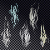Zestaw realistyczny dym przezroczyste lub pary w kolorach szary, na przezroczystym tle. Przejrzystości w formacie wektorowym