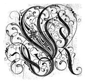 Kwiatowy litera P, vintage rysowania linii lub Grawerowanie ilustracja