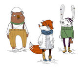 Kobiety w jesienne ubrania, czekając na kogoś. Ilustracja zabawny ładny
