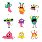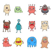 Zestaw potworów kreskówka na białym tle. Ilustracja wektorowa.