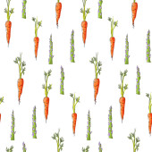 Wzór z marchewką i szparagi. Ilustracja wektorowa.