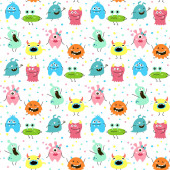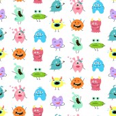 Wzór z potworami z kreskówek. Ilustracja wektorowa.