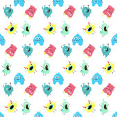 Zdjęcie "Wzór z potworami z kreskówek. Ilustracja wektorowa." może być wykorzystywane do celów osobistych i komercyjnych zgodnie z warunkami zakupionej licencji Royalty-free. Obraz jest dostępny do pobrania w jakości wysokiej rozdzielczości do 5760x3840.