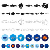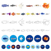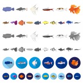 Zdjęcie "Różne rodzaje ryb płaskich ikony w kolekcja zestaw do projektowania. Symbol web czas ilustracja wektorowa ryb morskich i akwarium." może być wykorzystywane do celów osobistych i komercyjnych zgodnie z warunkami zakupionej licencji Royalty-free. Obraz jest dostępny do pobrania w jakości wysokiej rozdzielczości do 5760x3840.