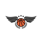 Ilustracja wektorowa koszykówki sport logo z typografii znak, piłka, skrzydła, Korona na białym tle.