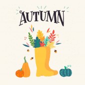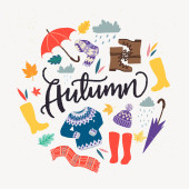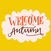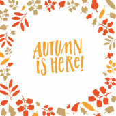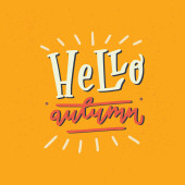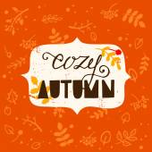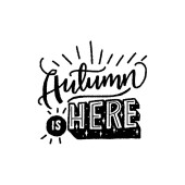 Jesień tutaj - to unikalne, ręcznie rysowane napis. Przytulne i inspirujący cytat. Jesienny projekt plakatu w wektor. Nowoczesne napis do projektowania odzieży, t-shirt, kart lub mediów społecznościowych.