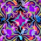 Kolorowe, świecące Paisley wektor wzór. Jasne multicolor tle kwiatów ozdobnych. Elegancja streszczenie kwiatów, liści, motyle, groszki. Piękny ornament z efektami świetlnymi