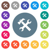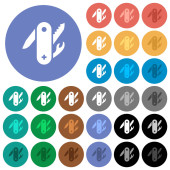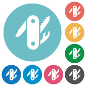 Swiss army knife płaskie białe ikony na okrągły kolor tła. 17 zmiany koloru tła są wliczone w cenę.