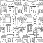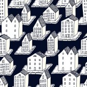 Wzór z domy i drzewa w czarnym i pomarańczowym, ręka tło wektor ciągnione halloween
