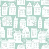 Wzór z domów w czarnym i pomarańczowym, ręka tło wektor ciągnione halloween