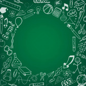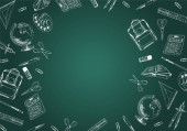 Powrót do szkoły na tle z miejscem dla tekstu. Ręcznie rysowane przybory szkolne - duży zestaw. Doodle napis i szkoły obiektu kolekcji. Ikonę szkicu. Koncepcja edukacji. Ilustracja wektorowa.