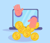Zarobków Bitcoin Online. Wektor wynagrodzenie. Kreskówka. Pojedyncze sztuki na białym tle. Z płaskim