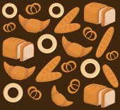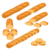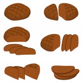 Ilustracja wektorowa zestaw pieczywo, cegła ciemny żyta, miękkie bagietka do piekarni. Chleb, składający się z piekarni naturalne pszenica smaczny żywności w plasterkach grzanki. Piekarnia chleba świeżego zboża z różnego
