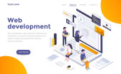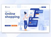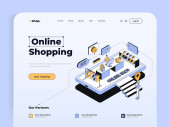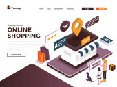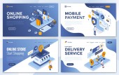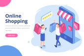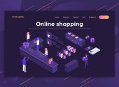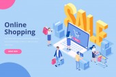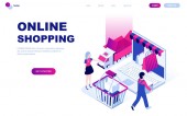 Nowoczesna, płaska koncepcja izometryczna zakupów internetowych na stronie internetowej i stronie mobilnej. Wzór strony lądowania. Łatwy do edycji i dostosowania. Ilustracja wektora
