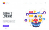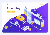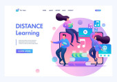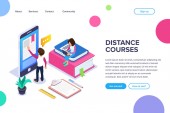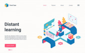 Nowoczesna, Płaska konstrukcja izometryczny koncepcja kształcenia na odległość dla witryny sieci Web i witryny komórkowej. Szablon strony docelowej. Łatwo edytować i dostosować. Ilustracja wektorowa