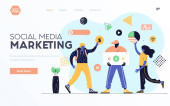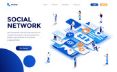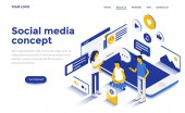 Nowoczesna, Płaska konstrukcja izometryczny koncepcji Social Media Marketing dla witryny sieci Web i witryny komórkowej. Szablon strony docelowej. Łatwo edytować i dostosować. Ilustracja wektorowa