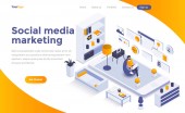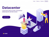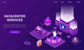 Nowoczesna, Płaska konstrukcja izometryczny koncepcji Smart data Center dla witryny sieci Web i witryny komórkowej. Młodzi ludzie współpracują ze sobą. Szablon strony docelowej. Łatwo edytować i dostosować. Ilustracja wektorowa