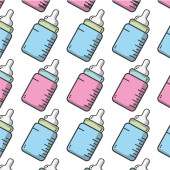 Wektor wzór z różowo -niebieskich butelek do karmienia.