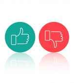 Zdjęcie "Kciuki w górę i kciuki w dół. Styl płaski - wektor akcji." może być wykorzystywane do celów osobistych i komercyjnych zgodnie z warunkami zakupionej licencji Royalty-free. Obraz jest dostępny do pobrania w jakości wysokiej rozdzielczości do 5760x3840.