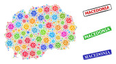 Macedonia litery tekstu Mapa-szkic, Republika Macedonii - w kształt kontynentu, mapę Łotwa - czerwony i niebieski wektor ilustracja