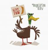 Z życzeniami dnia szef kuchni międzynarodowej. Wektor zabawny kreskówka kucharz Sowa kapelusz na niebieskim tle.