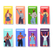 zestaw różnych cute dzieci noszą potwory kostium happy halloween koncepcja partii celebracja na białym tle poziome kolekcji płaskie