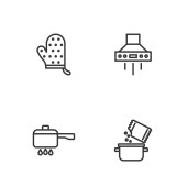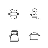 Zestaw symboli płaski ikony kuchnia z płytą WPR, płyta, zupy i inne ikony dla projektu logo mobilnych aplikacji sieci web.