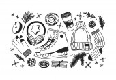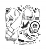 Ręcznie rysowane bezszwowe wzór Ice Skating rzeczy. Winter Sport tło wektor. Ilustracja moda rzeczywiste. Oryginalny styl ładny rysunek. Dzieła sztuki twórczej atramentu
