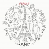 Francja zwiedzanie zabytków i słynnej podróży atrakcje plakat.