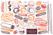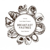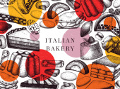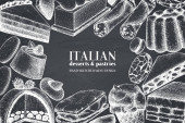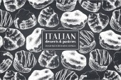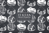 Wzór z atramentem ręcznie rysowane włoski deser szkicu. Tło Vintage. Wektor ciasta, tarty i pasztety ilustracja dla piekarnia projekt.