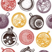Projekt wektor z ręcznie rysowane zimowe napoje ilustracja. Vintage napoje szkic tło. Retro szablon. Szablon menu restauracji lub kawiarni.