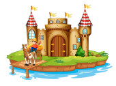 Książę i księżniczka na drewniany most, w pobliżu zamku