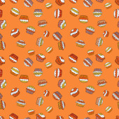 Zdjęcie "Bezszwowe wektor ładny babeczki i babeczki. Cupcake kolorowy na białym tle na projekt plakatu żywności na żółty, purpurowy i biały." może być wykorzystywane do celów osobistych i komercyjnych zgodnie z warunkami zakupionej licencji Royalty-free. Obraz jest dostępny do pobrania w jakości wysokiej rozdzielczości do 5760x3840.