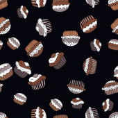 Bezszwowe wektor ładny babeczki i babeczki. Cupcake kolorowy na białym tle na projekt plakatu żywności na żółty, purpurowy i biały.