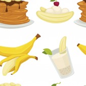 Zdjęcie "Rodzaje deserów, banana ze skórką i chleb piekarnia wektor wzór. Ciasta i polewy czekoladowe, naleśniki i miskę z zbóż. Knedle, pieczone żywności z cherry berry na białym tle posiłek" może być wykorzystywane do celów osobistych i komercyjnych zgodnie z warunkami zakupionej licencji Royalty-free. Obraz jest dostępny do pobrania w jakości wysokiej rozdzielczości do 5760x3840.