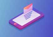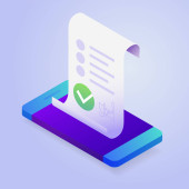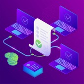 Blockchain, koncepcja inteligentnego umowy. Online business z podpisu cyfrowego. 3D izometryczny ilustracja.