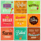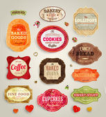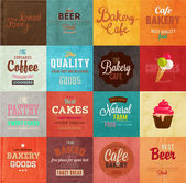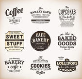 zestaw retro piekarni i kawa etykiety, taśmy i kart za projekt starodawny stary tekstury papieru