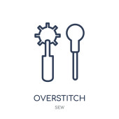 Overstitch ikona. Overstitch projekt symbol liniowy z kolekcji Sew. Proste konspektu element wektor ilustracja na białym tle.