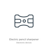 Zdjęcie "Elektryczna ostrzałka ołówka. Electric pencil ostrzenia symbol liniowy projekt z kolekcji urządzeń elektronicznych." może być wykorzystywane do celów osobistych i komercyjnych zgodnie z warunkami zakupionej licencji Royalty-free. Obraz jest dostępny do pobrania w jakości wysokiej rozdzielczości do 5760x3840.