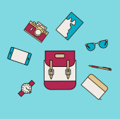 Ręcznie rysowane ilustracja moda co jest w mojej torbie. Obraz wektor dorywczo obiektów na różowym tle. Rysunek Artystyczny doddle. Dzieła sztuki twórczej atramentu