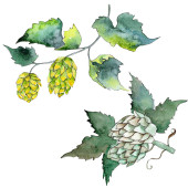 Zielony chmielu. Zielony liść. Botaniczny liści roślin. Zestaw ilustracji tle akwarela. Element na białym tle chmielu.