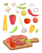 Zestaw Grill, sprzęt do grillowania i mięsa, Vector Icon