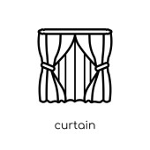 kurtyny scenie ikony. Modny nowoczesny liniowych płaskich wektor kurtyny scenie ikona na białym tle z cienka linia rozrywka kolekcji, szkic wektor ilustracja