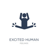 podekscytowany ikona. Modny nowoczesny wektor liniowych płaskich podekscytowany ikona na białym tle z cienka linia uczucia kolekcji, edytowalne konspektu udar wektor ilustracja