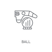 Derrick ikoną liniowe kulkowe. Derrick z piłka koncepcja symbol obrysu. Cienkich elementów graficznych wektorowych ilustracji, wzór kontur na białym tle, eps 10.