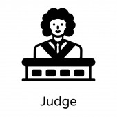 Ikona sędziego. Modny nowoczesny płaskim liniowe wektor sędzia ikona na białym tle z prawa i Sprawiedliwości z kolekcji cienka linia, edytowalne konspektu udar wektor ilustracja