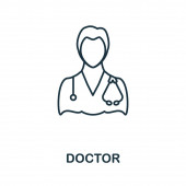 Lekarz ikona. Modny nowoczesny liniowych płaskich wektor ikona lekarz na białym tle z cienka linia zawodów kolekcji, edytowalne konspektu udar wektor ilustracja