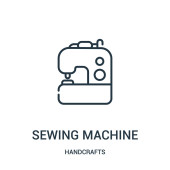 Ikony urządzeń do szycia. Modny nowoczesny liniowych płaskich wektor szycie sprzętu ikona na białym tle z cienka linia kolekcji Sew, szkic wektor ilustracja