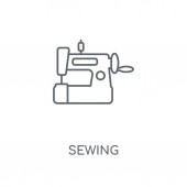 do szycia dialogowe ikonę. Modny nowoczesny liniowych płaskich wektor szycia pole ikona na białym tle z cienka linia kolekcji Sew, szkic wektor ilustracja
